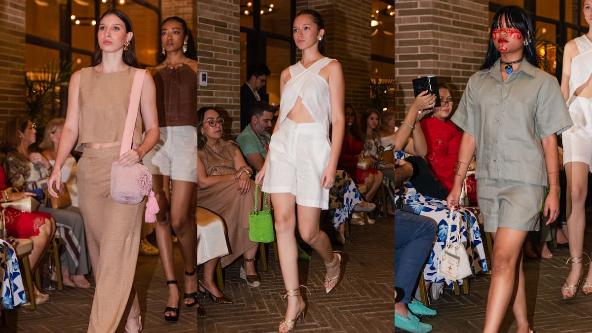 La apertura de este evento de moda tuvo una pasarela con la marca wayú Wayalupe, que teje mochilas en colaboración con l...