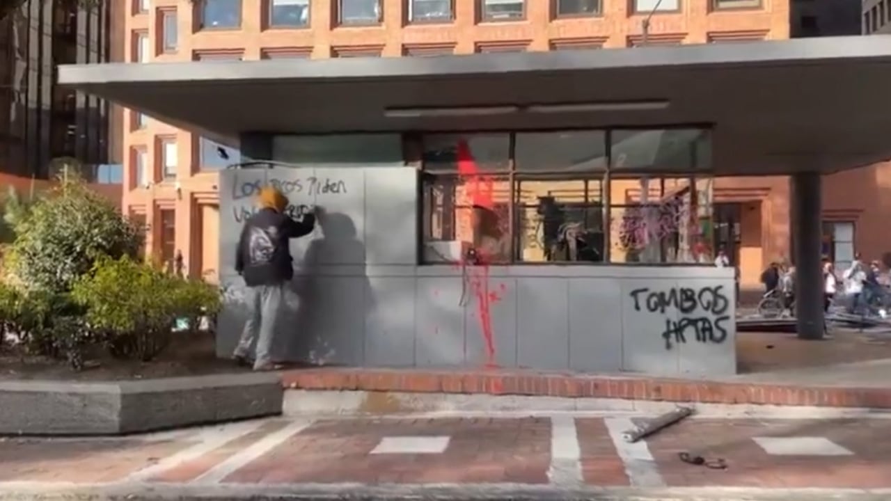 Vandalizan CAI de la Avenida Chile en Bogotá durante protestas a favor de Palestina; UNDMO intervino