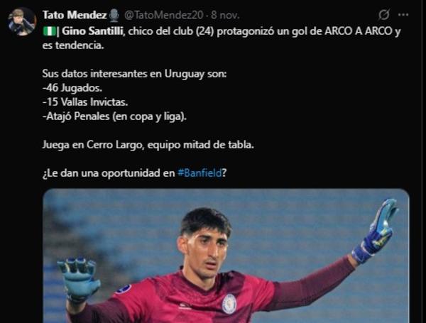 Ocurrió en el partido Cerro Largo vs. Liverpool.Un tremendo golazo. Ese fue el que anotó el golero argentino Gino Santil...