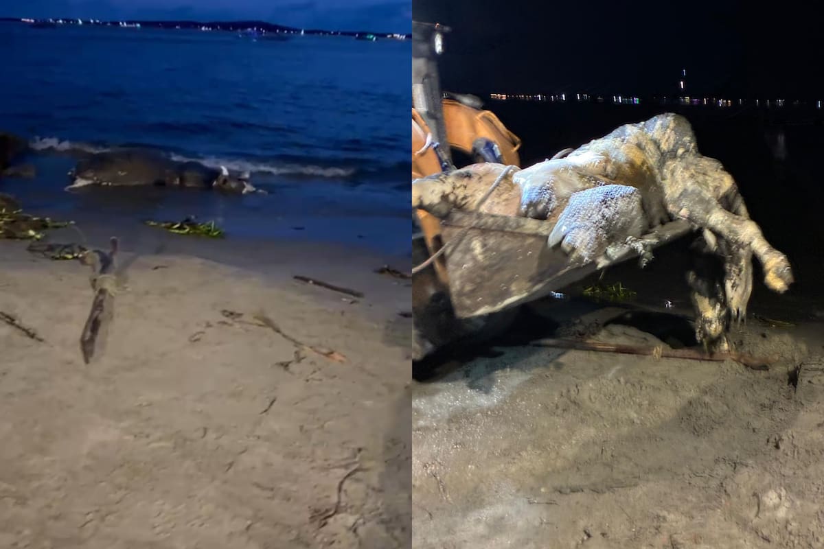 El cuerpo del animal fue avistado y posteriormente retirado de la orilla con ayuda de una maquinaria amarilla.El hallazg...