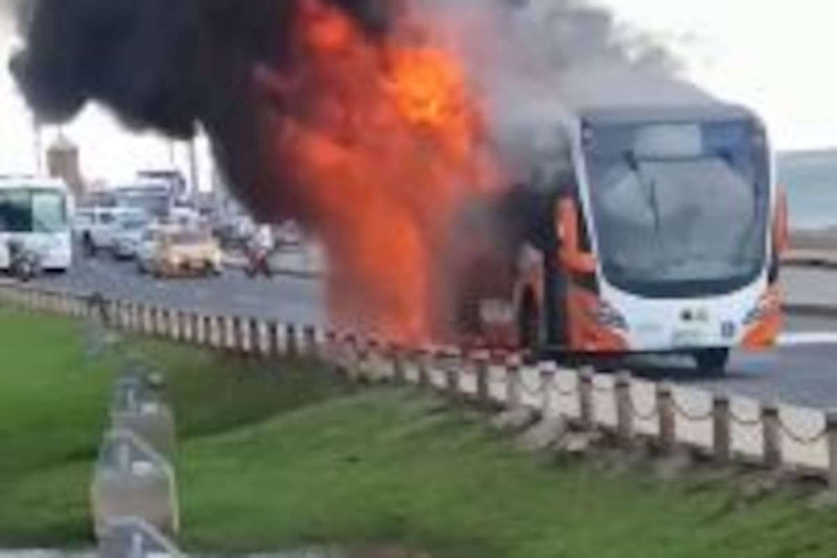 Video: voraz incendio arrasó con articulado de Transcaribe en la avenida Santander