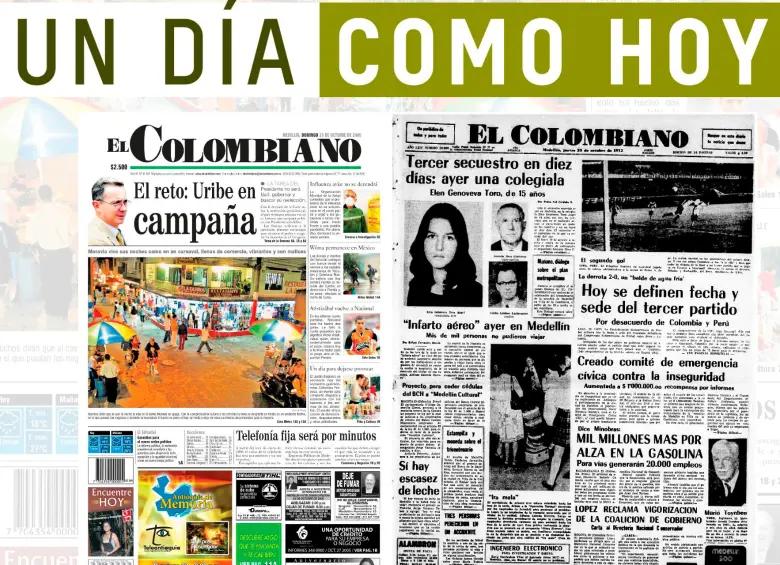 Las portadas de Un día como hoy hace 20 y 50 años.HACE 20 AÑOS: EL RETO: URIBE EN CAMPAÑA Con la decisión de la Corte Co...