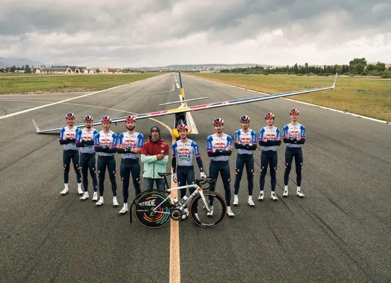 Video | ¡Qué potencia! Así fue como ciclistas del Red Bull Bora impulsaron una avioneta hasta su despegue