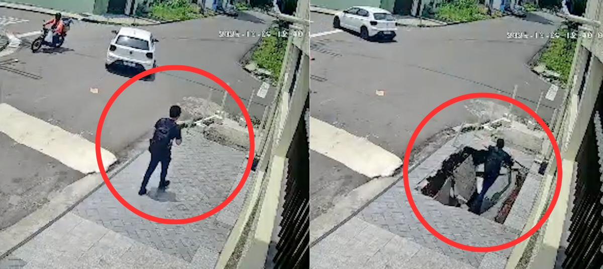 Video | Peatón es 'tragado' por un hueco que se abre en la acera y desaparece sin dejar rastro: el agujero tiene que ver con una fuga de agua