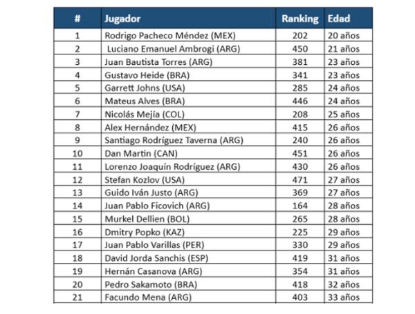 Son 21 jugadores los que competirán entre 23 y 30 de noviembre en el Club Los Lagartos de Bogotá.El Challenger Seguros d...