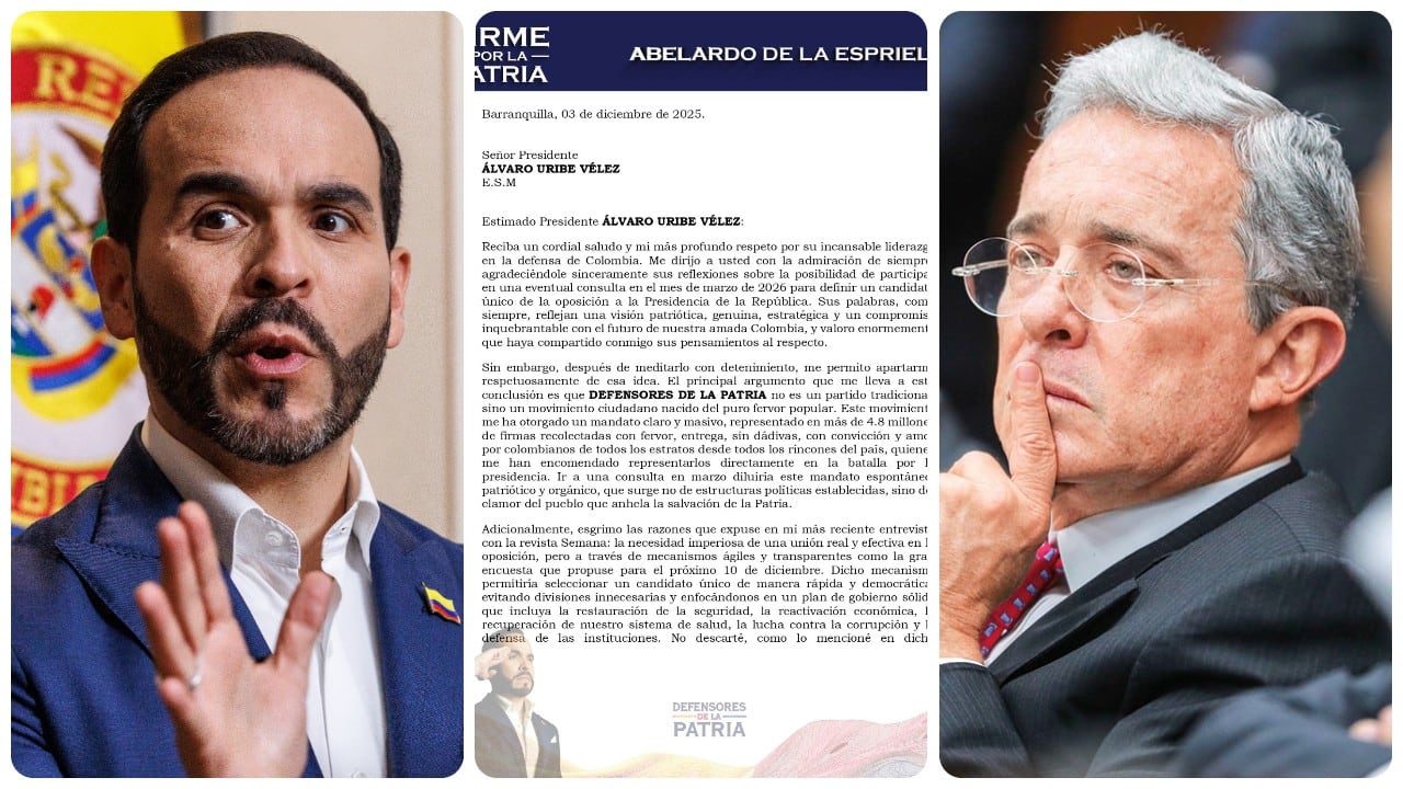 Abelardo de la Espriella hace pública la carta que le envió a Álvaro Uribe, en la que rechazó participar en la consulta en marzo